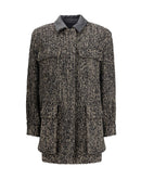 The Max Mara Wool tweed Jacket offers a contemporary take on the safari style, blending structure with understated luxury. Crafted in wool tweed, it features a straight silhouette and four patch pockets with flaps on the front, enhancing its utilitarian inspiration. The leather shirt collar adds a refined contrast, while the concealed zip fastening ensures a clean finish. Shirt-style cuffs with press buttons and side vents at the back complete the design. Fully lined for comfort, this piece strikes the balance between function and elegance.
