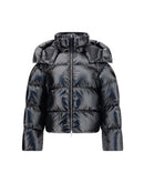The Lothar Short Down Jacket with hood from Moncler x EE72 by Edward Enninful combines style and functionality. Crafted from nylon with a longue saison lining, it features lightweight yet warm padding, ideal for colder days. The detachable hood and elasticated collar with snap-button fastening add practicality, while the central zip, snap-button pockets, and drawstring hem define a versatile design. The iconic logo patch completes the look with Moncler Genius’s distinctive touch.