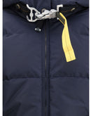The Long Bear Down Jacket from Parajumpers is a classic and timeless addition to the collection, featuring an adjustable drawstring hood and down filling for warmth and comfort. Made of recycled and laminated nylon oxford, it combines sustainability and durability. A double-slider front zipper closure provides convenience, while two button pockets offer functionality. Elastic rib cuffs and zippered side vents add technical and stylish details. Completing the design are the Parajumpers patch on the sleeve and the iconic removable yellow tape hook at the collar closure, the brand’s signature symbol.