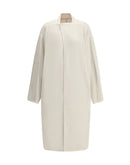 Rick Owens’ off-white Island coat features an asymmetrical front overlay, relaxed fit and straight hem.