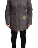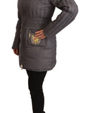 Roccobarocco Gray Quilted Long Sleeves Logo Patch Full Zip Jacket