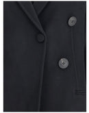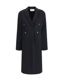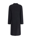 This classic Wool Coat features decorative horn buttons inspired by double-breasted styling. It has a central closure with fabric-covered buttons, horn details on the front and cuffs, a welt chest pocket, and side pockets. An timeless and refined piece, perfect for transitional seasons