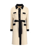 Valentino’s virgin wool Coat is a refined piece that combines classic elegance with modern details. The contrasting pointed collar, along with the cuffs and sleeve hem, adds a distinctive graphic touch, while the covered button closure and flap and decorative button pockets recall traditional tailoring. The black fabric belt to tie at the waist enhances the silhouette, making the coat even more feminine and versatile. An essential garment to face winter in style, signed by one of the most iconic maisons of Italian fashion.