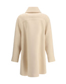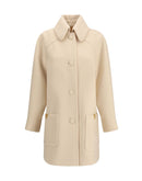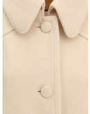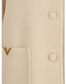 The Wool Drap Caban by Valentino is a refined outerwear piece with a classic collar and a relaxed fit. The design is enriched with the iconic V Gold detail on the pockets, a signature of the Maison. A front button closure and virgin wool construction with floral, striped, and VLogo lining complete the model’s elegance.