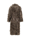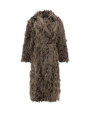 Brunello Cucinelli’s coat is an elegant and refined piece, featuring a classic collar that adds a sophisticated touch. The front button closure ensures a secure fit, while the two welt pockets on the front offer functionality and a clean design. The back slit allows more freedom of movement and a dynamic look. Applied synthetic fur details give a luxurious accent while maintaining a sleek, contemporary style at all times.