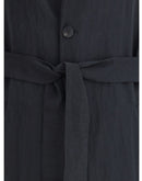 The lyocell-blend Trench Coat by Fear of God embodies the brand’s refined, relaxed aesthetic. Cut with a fluid, minimalist silhouette, it features classic notched lapels, button fastening, and a self-tie belt that defines the waist. Side welt pockets and a central back vent enhance practicality and ease of movement, while the subtle branded label at the back completes this effortlessly sophisticated piece.