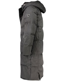 Indulge in the epitome of modern sophistication with this striking Guess Jeans long-sleeved jacket. Tailored for the man who dares to stand out, this black beauty boasts a water-resistant exterior, a warm real down filling, and stylish recycled fibers. It’s equipped with a practical hood, a double external pocket for your essentials, and an internal pocket for added security. The double zipper and button closure ensure extra protection against the elements. Make a bold statement while keeping cozy in this Guess Jeans innovation.