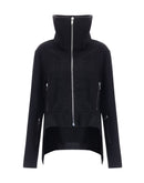Rick Owens virgin wool Exploder Jacket, featuring a high collar and front zip fastening. It features two side zipped welt pockets, adjustable zipped cuffs and a symmetrical hem with a longer back panel, for a dynamic and contemporary effect. A functional garment with a distinctive style.