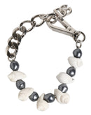 Dolce & Gabbana Silver Tone Brass Beaded Shell DG Logo Pendant Bracelet