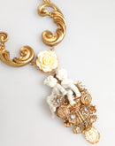 Dolce & Gabbana Gold Ceramic Crystal Cherub Baroque Pendant Necklace