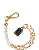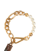 Dolce & Gabbana Gold Tone Brass Faux Pearl Logo Embellish Charm Bracelet