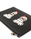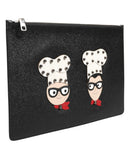 Dolce & Gabbana Black Leather #DGFAMILY Embellished Men Clutch Pouch Bag