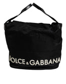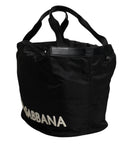 Dolce & Gabbana Black Nylon White Iconic Logo Shoulder Bucket Bag