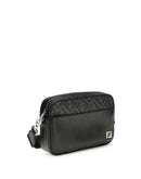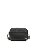 Fendi’s FF leather and canvas Shoulder Bag is a compact model that combines elegance and functionality. Made of smooth black leather and FF Canvas in the same color, it is embellished with a metal FF logo applique. It features an exterior flat pocket, a zippered main compartment and lined interior. The crossbody strap in technical fabric, finished with FENDI lettering, is adjustable and removable to fit every style and comfort need.