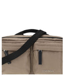 Givenchy’s Essential U canvas Fanny Pack combines practicality and urban style. Made of durable canvas, it features a top handle, zipper closure and leather pull tab. The adjustable GIVENCHY webbing shoulder strap allows for crossbody wearability. Signature metal and silver details add a distinctive touch. A main compartment and two front zipper pockets complete the design.