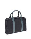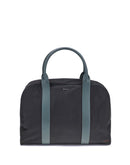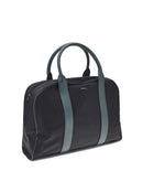 Nylon Travel Bag by Kiton with two upper tubular leather handles that extend over the front and back panels for a sleek, sturdy design. The brand’s iconic monogram stands out on the front. The top zipper closure provides security, while the single large interior compartment offers functional space for all your travel essentials.