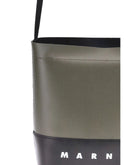 Marni’s colorblock Shoulder Bag combines modern design and functionality. Featuring an adjustable ribbon shoulder strap for personalized comfort, it has a practical and secure zipper closure. A Marni logo print stands out on the front, while palladium metal elements add a touch of contemporary elegance.