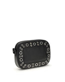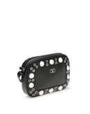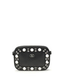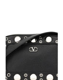 The Nellcôte Shoulder Bag by Valentino Garavani is crafted from grained calfskin with a profile decorated with ball studs and rivets, giving it a bold character. Featuring an adjustable leather strap, it can be worn on the shoulder or cross-body. Palladium-finish metal details, a small VLogo Signature metal detail, and a zip closure complete the design, while the suede lining and internal card pocket add practicality and elegance.