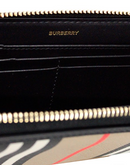 Burberry Ellerby Black Leather Icon Stripe Canvas Zip Around Continental Wallet