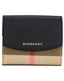 Burberry Luna Black Grained Leather House Check Canvas Coin Pouch Snap Wallet