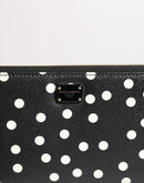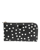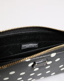 Dolce & Gabbana Black White Dotted Leather Zip Around Continental Wallet