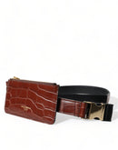 Dolce & Gabbana Brown Alligator Leather Airpods Case Coin Purse Wallet