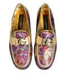 Dolce & Gabbana Multicolor Jacquard Gold DG Logo Loafer Shoes