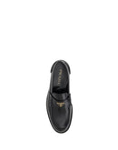 Prada’s leather Loafers are a mix of classic elegance and distinctive details. The slightly elongated round toe and leather block heel ensure comfort and style. The iconic enameled triangular plaque with the brand’s signature applied to the front adds a touch of recognition, while the logo-embossed insole completes the design. Perfect for a sophisticated yet versatile look, these loafers are ideal for those seeking quality and timeless style.