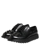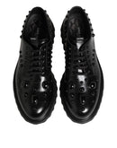 Dolce & Gabbana Black Leather Studded Men Formal Derby Shoes