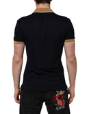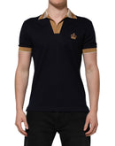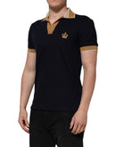 Dolce & Gabbana Black Cashmere Crown Logo Men Polo T-shirt