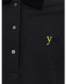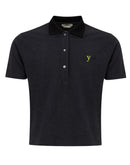 Fendi black short sleeve polo, small black writing with contrasting fluorescent yellow letter and tone-on-tone embroidered logo.