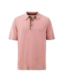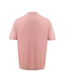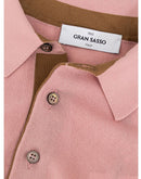 Polo Knitting Pattern in Rosa Gran Sasso. In pink cotton with brown detail on the collar and bottom, classic collar, three-button closure