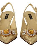 Dolce & Gabbana Gold Crystal Slingbacks Pumps Heels Shoes