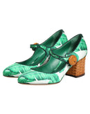 Dolce & Gabbana Green Silk MARY JANES Leaf Sandals Shoes