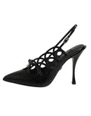 slingback heels are a timeless expression of elegance and craftsmanship. Made from premium black leather, they feature a pointed toe and a sleek high stiletto heel that elongates the leg. The adjustable slingback strap ensures a secure and comfortable fit. Perfect for both formal and evening occasions, these heels embody classic Italian sophistication.