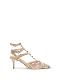 Rockstud Pumps by Valentino Garavani are crafted from refined lace, with suede straps and piping. The iconic platinum-finish studs and adjustable straps add a bold touch to an elegant, feminine design.