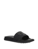 The Slide Sandals by Fendi combine comfort and style with a distinctive modern design. Featuring an open toe and a wide front strap with embossed logo, they have a notched sole that adds a contemporary touch and provides stability. An essential yet iconic style, perfect for a luxe casual look.