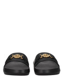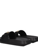 The product with MPN 1010628DV46G1B00V and code F78140 leather in black is a slippers and clogs designed by Versace. It has features like back logo.