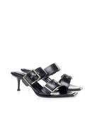 Alexander McQueen buckle sandal in black leather with two buckles on the back of the foot, the first of which can be fully opened. Square toe, open toe and stiletto heel, branded insole Composition: 100% Leather-Sku inside:23MAR35-40