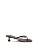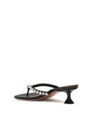 Amina Muaddi’s Gigi Sandals stand out for their open round toe and flip-flop upper embellished with sparkling rhinestones. The kitten heel with a matte finish lends an understated, modern elegance, perfect to complete any refined look in style.