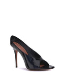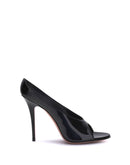 Amina Muaddi Black Calf Leather Bos Taurus Stiletto Heel Sandals