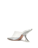Amina Muaddi Silver Calf Leather Bos Taurus Stiletto Heel Sandals