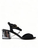 Dolce & Gabbana Black Crystals Ankle Strap Sandals Shoes