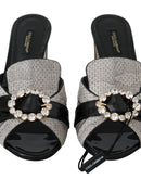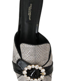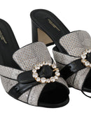 Dolce & Gabbana Black Gray Exotic Leather Crystals Sandals Shoes