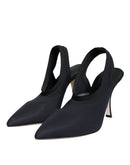 Dolce & Gabbana Black Jersey Stretch Heels Slingback Shoes