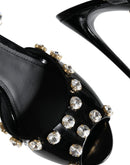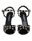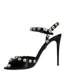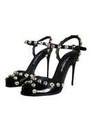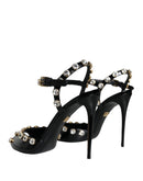 Dolce & Gabbana Black Leather Crystal Ankle Strap Sandals Shoes