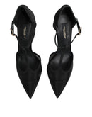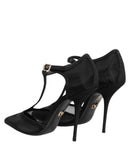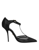 Dolce & Gabbana Black Mesh T-strap Stiletto High Heels Shoes