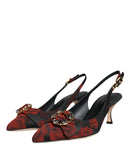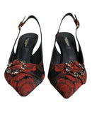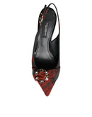 Dolce & Gabbana Black Red Floral Crystal Heel Slingback Shoes