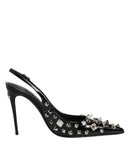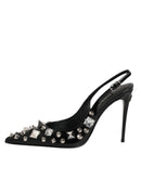 Dolce & Gabbana Black Studded Leather Heels Slingbacks Shoes