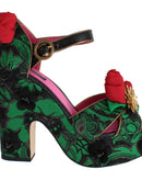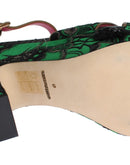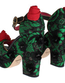 Dolce & Gabbana Green Brocade Snakeskin Roses Crystal Shoes